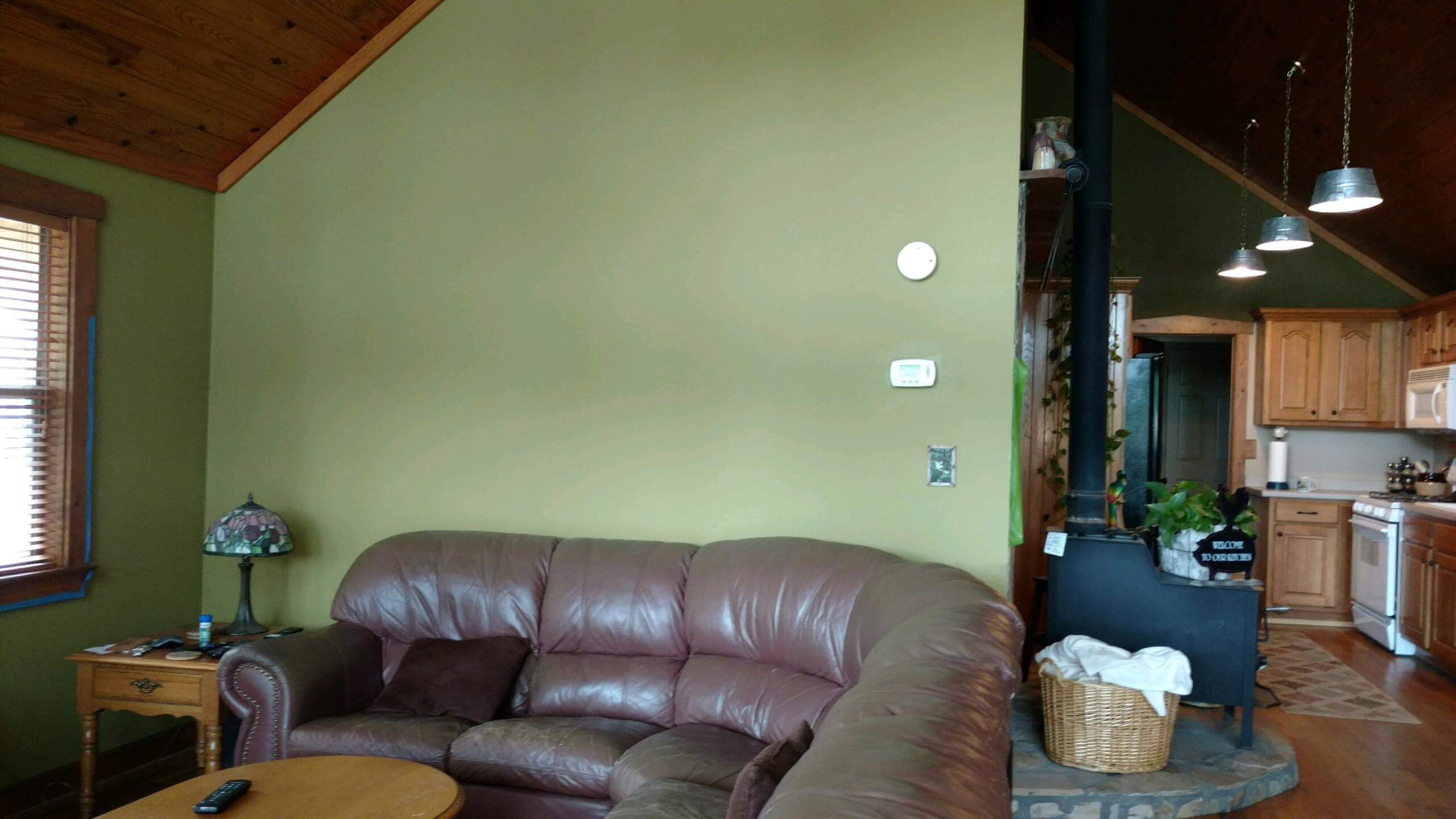 The appearance of the home was greatly improved through repaired drywall and interior paint. Accomplishing the naturally rustic feel throughout the home, custom clear pine casings were added around the doors, windows, and baseboards. The warmth and style of the home were further enhanced through custom distressed false beams, a column, and a fireplace with a custom maple โlive edgeโ mantel placed in the central living room.